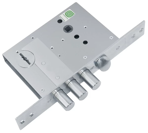 Замок врезной сувальдный с защелкой ЗВ 5011 предназначен для установки в металлические двери, шкафы и сейфы. Универсальные - переворот защелки без разборки замка. Бронепластина надежно защищает от высверливания. Повышенная защита от наиболее распространенных методов вскрытия: самоимпрессии (самоноборного ключа) - втулка на корпусе и крышке замка; отмычки - ложные пазы на стойке и сувальдах, увеличенная жесткость пружин сувальд; "свертыша" - ослабленный зуб рейки хвостовика; взлома - при полностью выдвинутых ригелях замка 30% их длины остается в корпусе замка, усилена конструкция засовов; высверливания - внешняя бронепластина, закаленная стойка рейки хвостовика; вандалов - отсутствие нижней стенки корпуса замка. Замок комплектуется 4 длинными ключами.