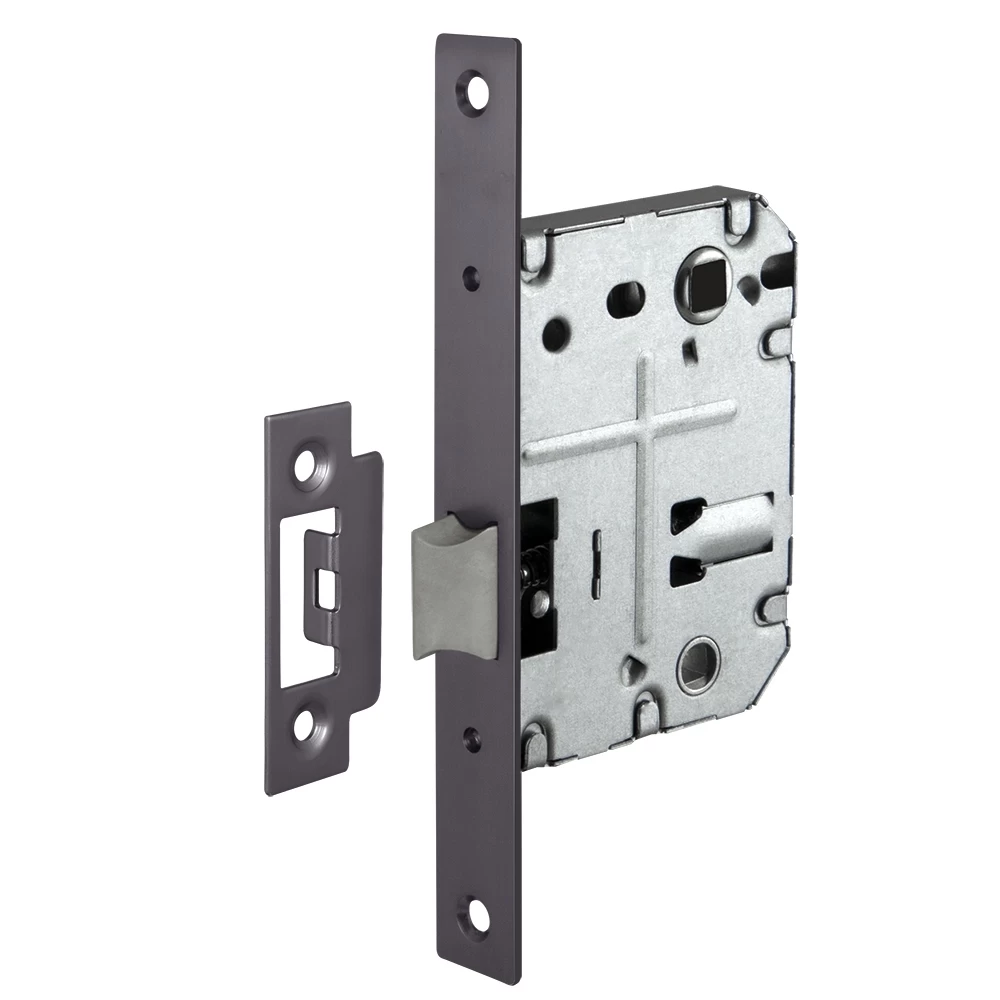Защелка врезная с пластиковым механизмом AJAX LP72-50 предназначена для установки в деревянные межкомнатные двери левого и правого открывания. Корпус выполнен из стали с гальваническим покрытием. Ударопрочный пластиковый механизм обеспечивает бесшумность работы защелки. Защелка LP72-50 имеет 2 класс надежности (100 000 циклов открывания/закрывания). Размер бэксета - 50 мм, межосевого расстояния - 70 мм. Возможна установка дверных ручек на стяжные винты для более прочного крепления. Цвет: графит. В комплектацию входят: ответная планка и крепежная фурнитура в цвет изделия.